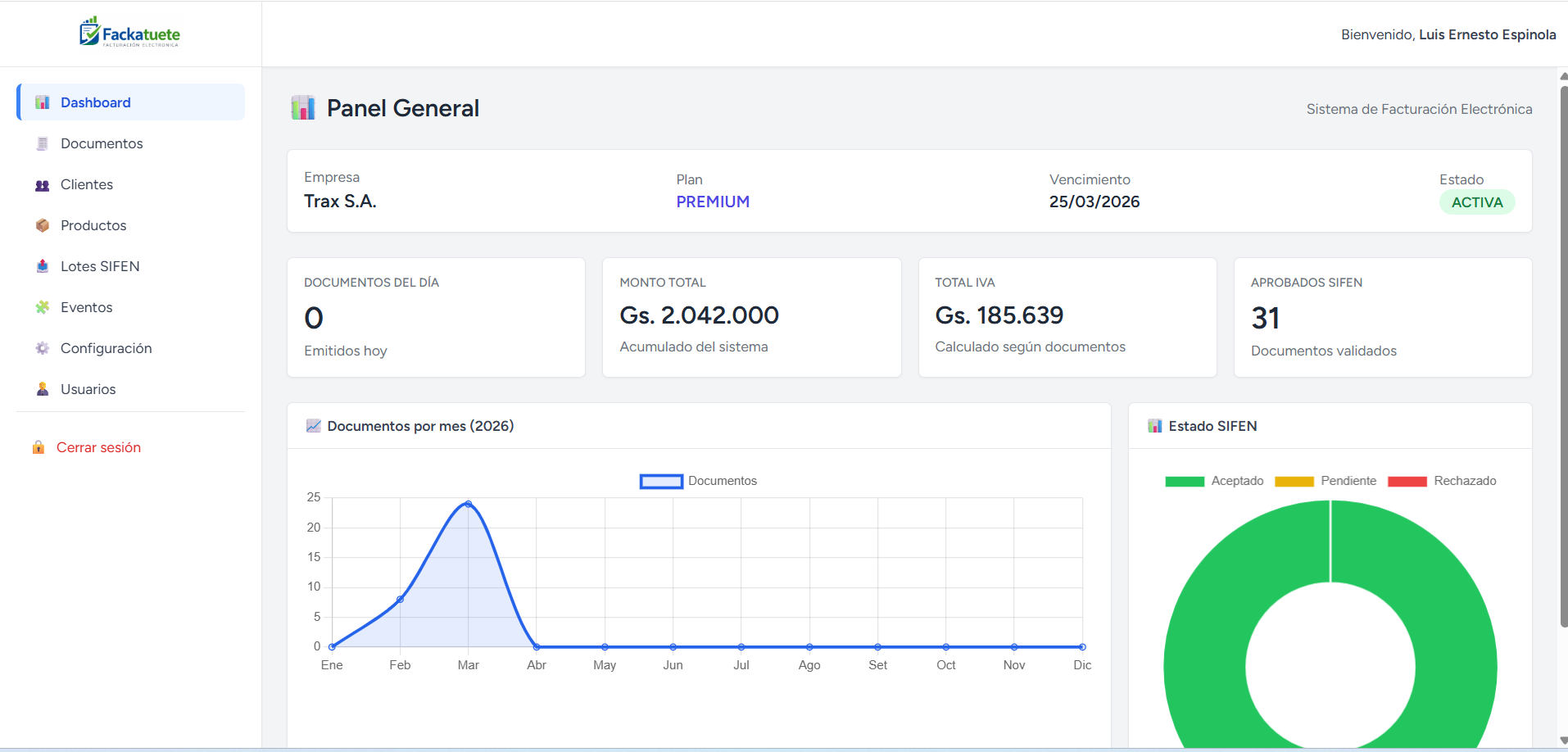 Visualiza el estado de tu facturación electrónica, montos totales, IVA y documentos aprobados por SIFEN.